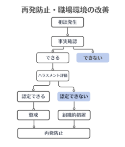 調査の結果、ハラスメントと認定できない場合でも、職場環境の観点から必要な対応を検討することがあります。